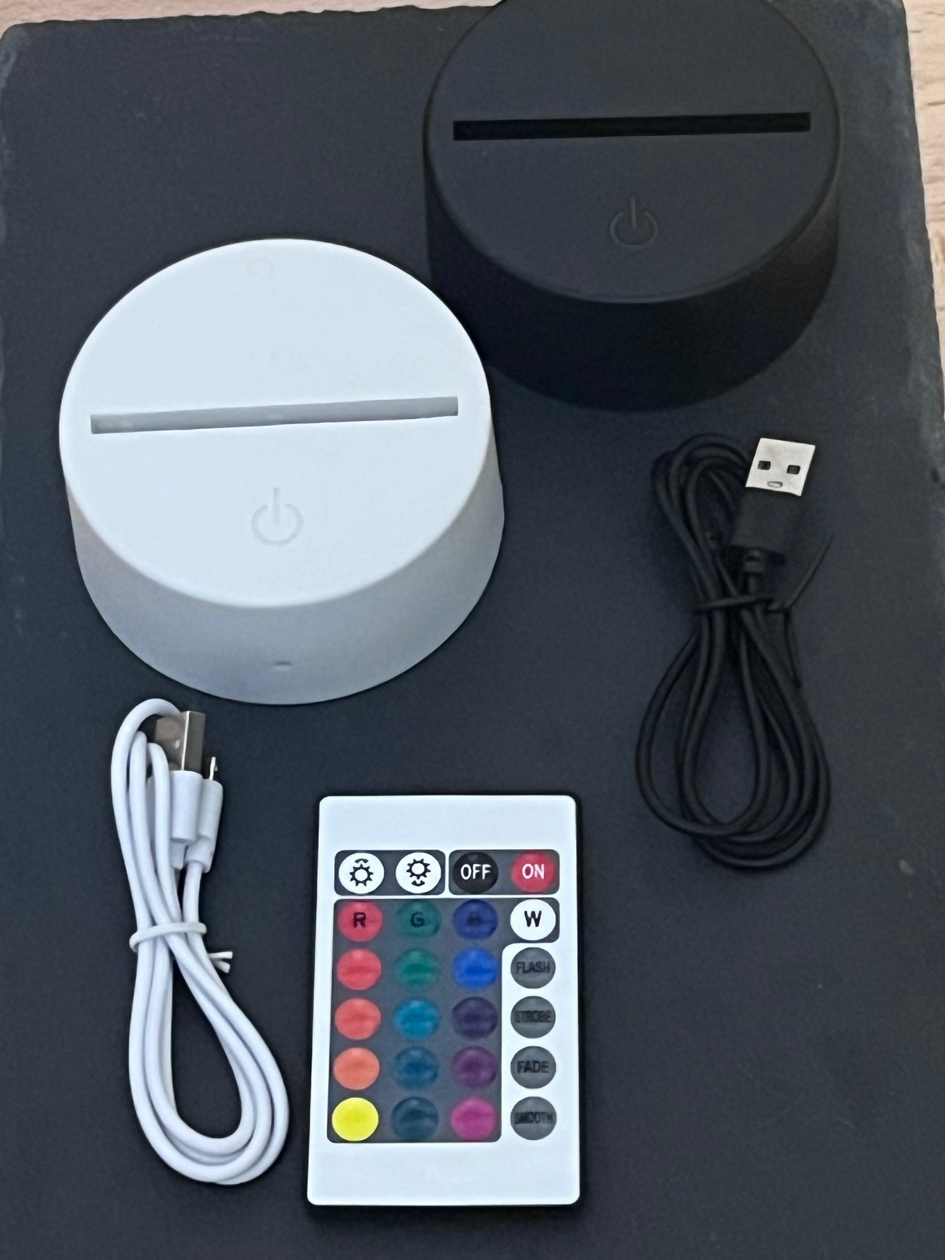 Available with a black or white base, these signs include a remote, USB cable, base, and an acrylic sign that just slides into the base. Additionally, they can be powered by three AA batteries.